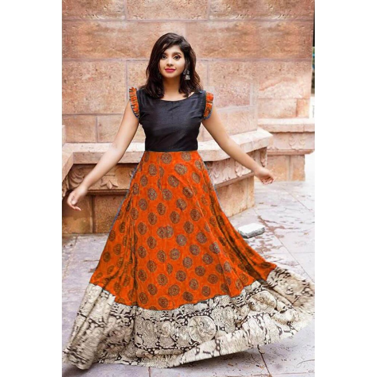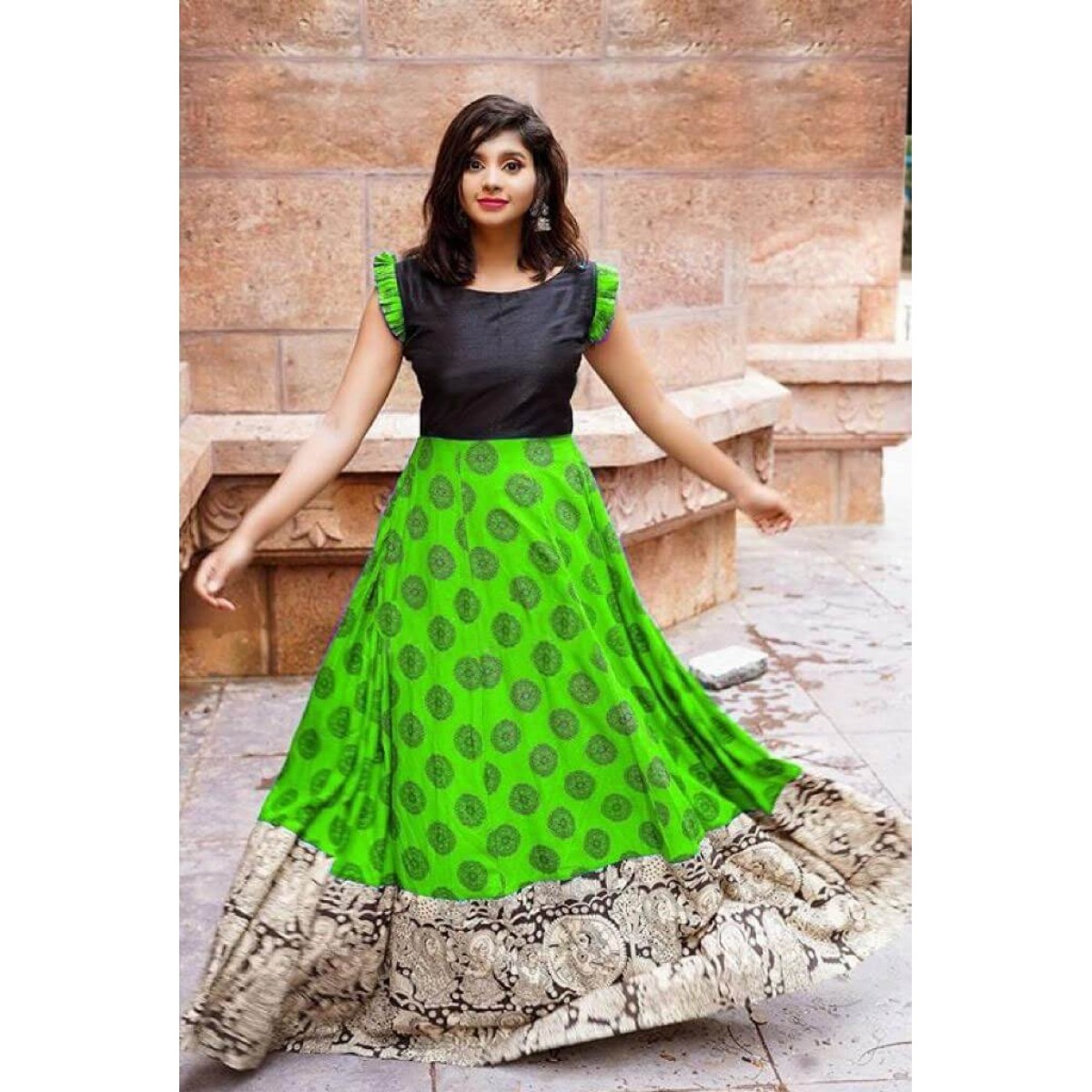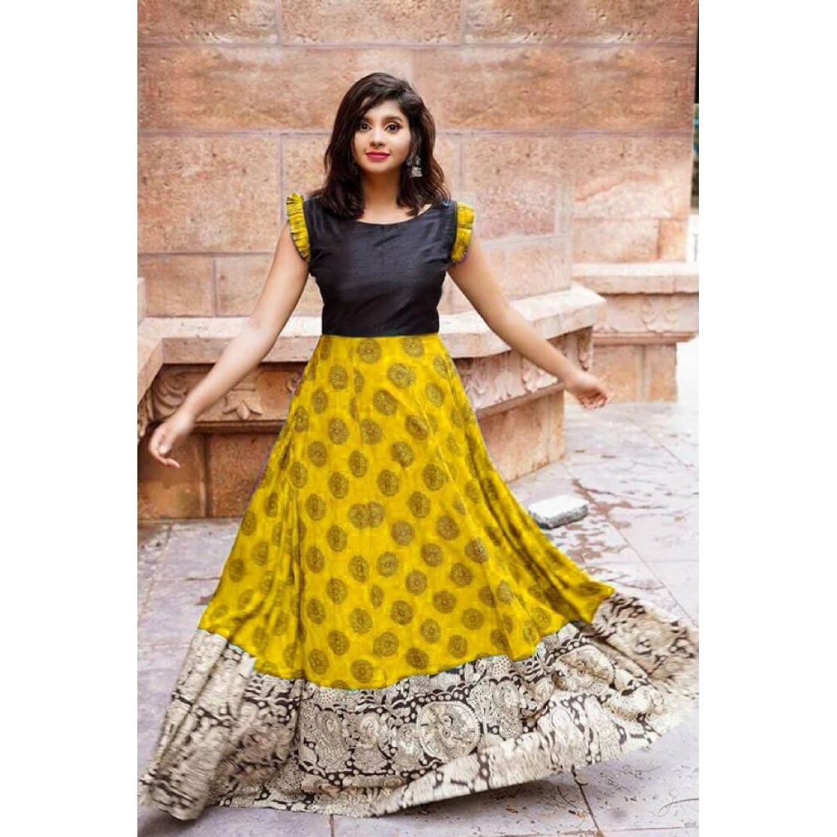 South Indian style long crepe fabric gown