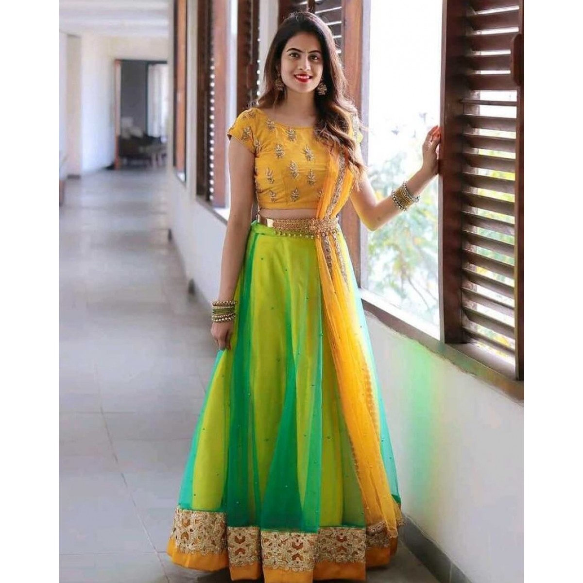 South Indian style morpinchh hues Full stitched Lehenga Choli